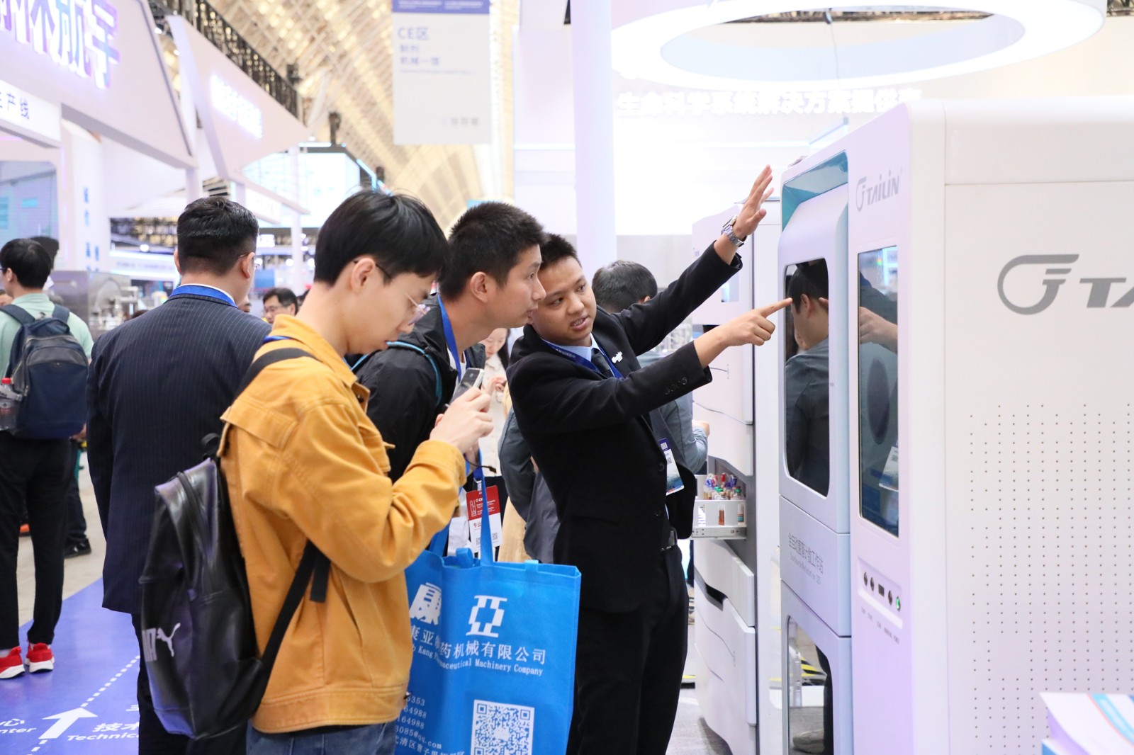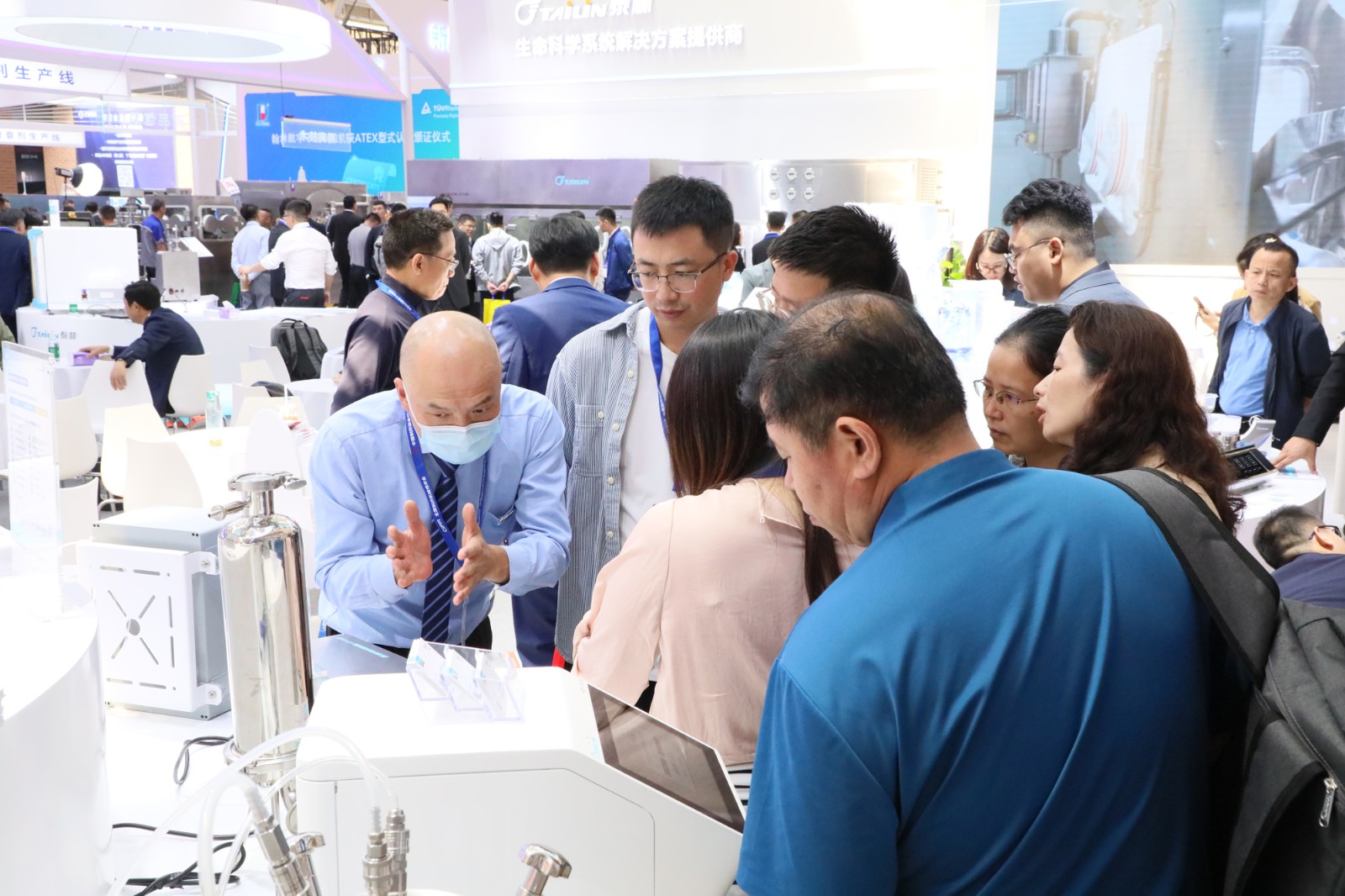 展會期間,絡繹不絕的觀眾聚集泰林生物展位,我們的工作人員全程提供專業的講解服務,與現場各位專家學者、各企事業相關人員,多角度探討制藥裝備行業發展趨勢和最新的技術應用,為制藥生產提供更加安全、高效和可靠的建設思路。