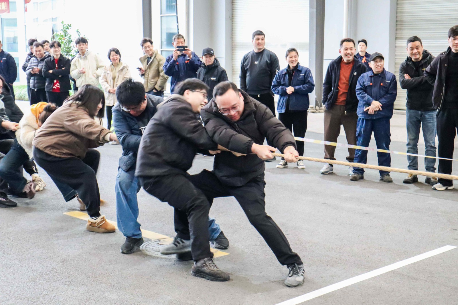 哨響,勁發(fā)!作為延續(xù)多年的開工傳統(tǒng),拔河比賽瞬間點(diǎn)燃全場(chǎng)熱情。賽場(chǎng)之上,泰林人穩(wěn)扎馬步、全力傾身,緊握麻繩凝聚全身力量;賽場(chǎng)之外,加油吶喊聲此起彼伏,響徹園區(qū)。麻繩之上紅綢的每一次擺動(dòng),都緊緊牽動(dòng)著所有人的心。